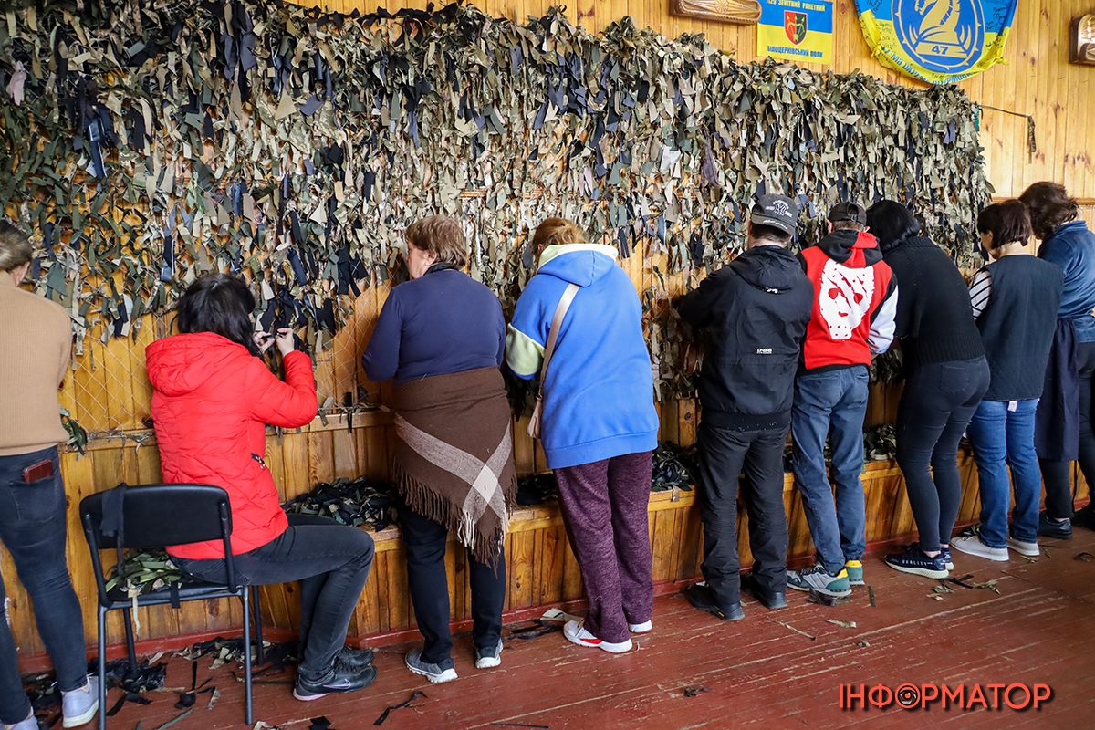 Тетяна Дайнега із волонтерського об’єднання клубу мікрорайону Трубайлівка, яке займається плетінням маскувальних сіток, розповіла, що за понад два роки роботи волонтери сплели 165 тисяч квадратних метрів маскувальних сіток. Зазначила, що відправляли допомогу військовим на всі напрямки бойових дій: