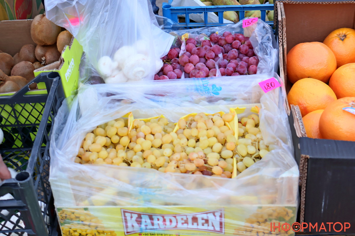 У фургончику з оптовими товарами можна було придбати виноград по 135 та 180 гривень за кіло