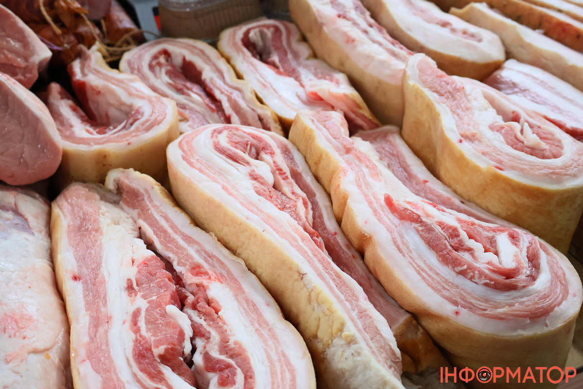 Цього тижня у м’ясному павільйоні людей було мало, продавці скаржились, що товар розпродається гірше. Ціни на біле сало коливаються від 150 до 180 гривень за кіло. Підчеревина коштує по 200-240 гривень за кіло. Також пропонували свинні печінку та легені по 50-70 гривень за кіло. Ціни на інше такі: