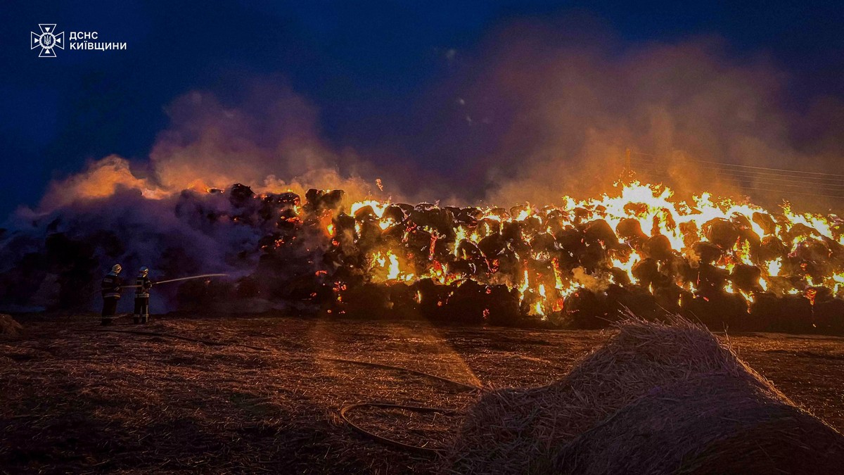 На Переяславщині сталася пожежа. На території ферми горіли тюки соломи.