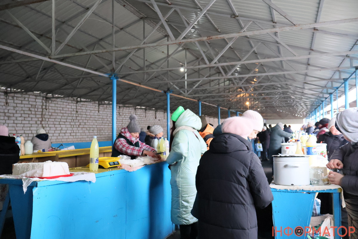 У відділі з молочною продукцією з кількістю товару та покупців проблем немає. Люди активно купували масло, на рядах воно коштує 350-400 гривень за кіло, а поруч з м’ясним павільйоном віддавали за 250 гривень за кіло. Сироватка коштує 15-20 гривень за півтора літра, а перепелині яйця – 50 гривень за 20 штук. На інше ціни такі: