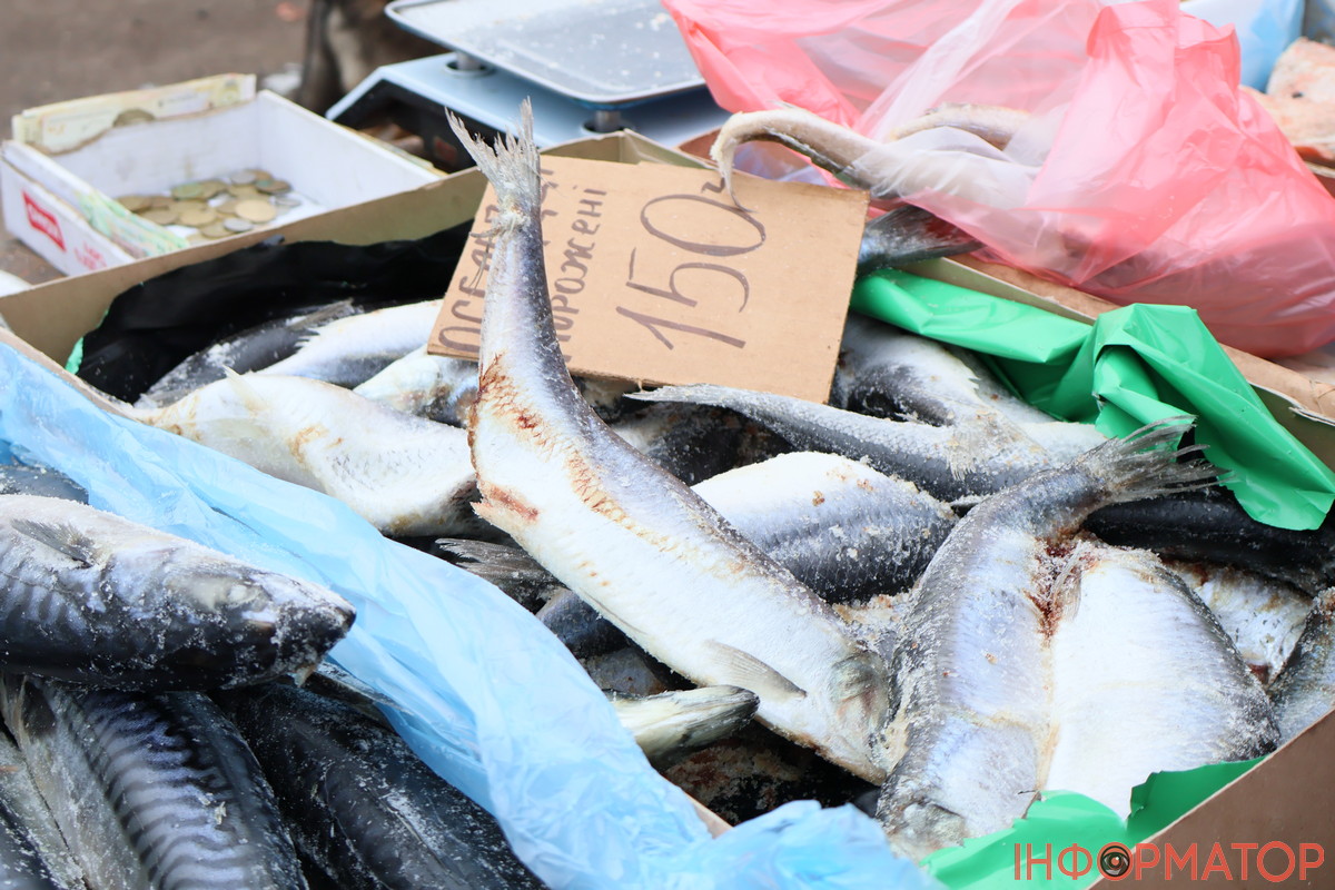 На рядах з рибною продукцією з’явились морожені оселедці, їх віддавали по 150 гривень за кіло