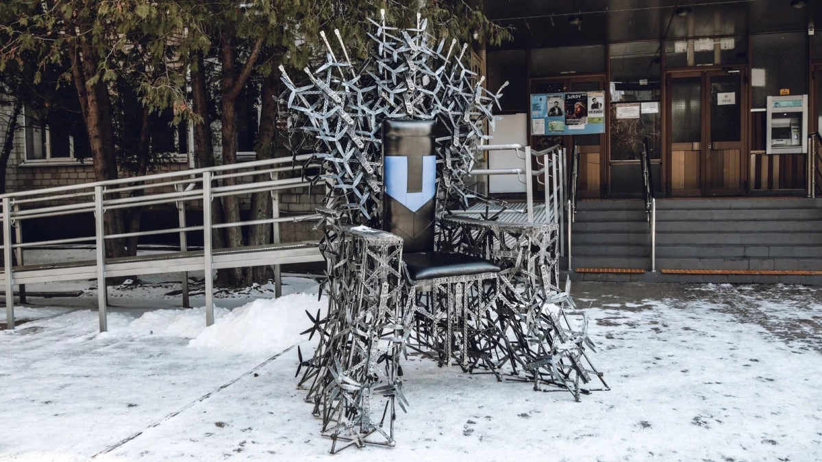 В університеті Переяслава встановили залізний “Трон переможця”: він допоможе зібрати гроші для ЗСУ