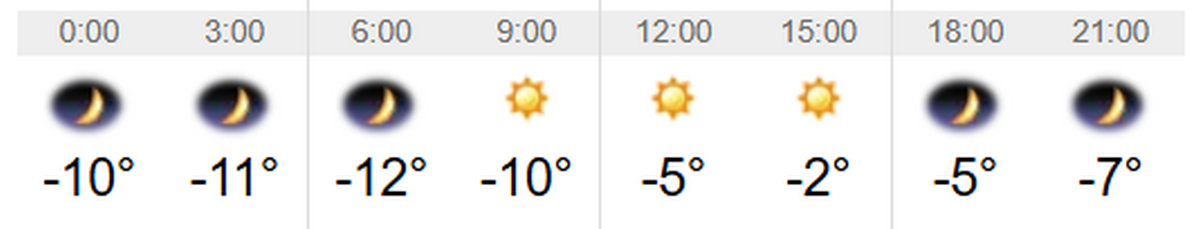 У неділю, 23 лютого, у Переяславі буде сонячно. Мінімальна температура повітря буде вранці – 12 градусів морозу. Максимальна вдень – 2 градуси нижче нуля. Про це повідомляє Інформатор, посилаючись на sinoptik.