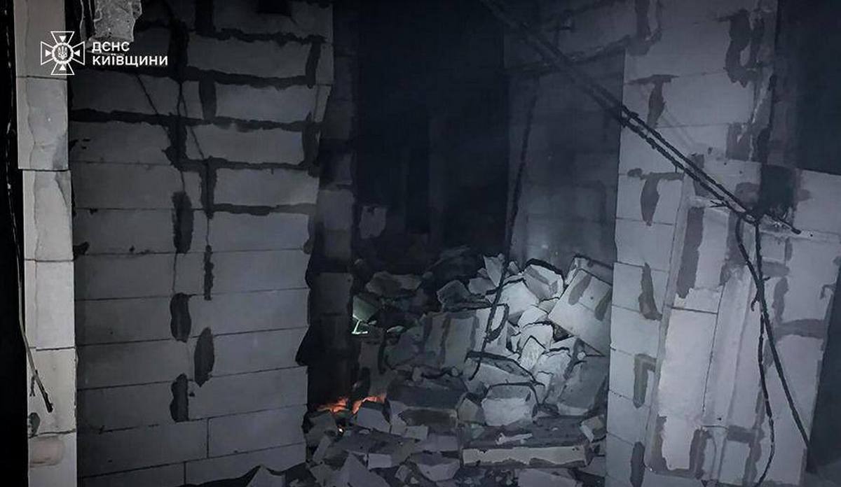 У Київській обласній військовій адміністрації повідомили, що в області влучань в об’єкти критичної інфраструктури не зафіксували. У Броварському районі пошкоджений недобудований багатоповерховий будинок. Пожежу між 23 та 24 поверхами оперативно ліквідували. Охоронець 1974 р.н. житлового комплексу отримав гостру реакцію на стрес. Необхідну медичну допомогу йому надали на місці.