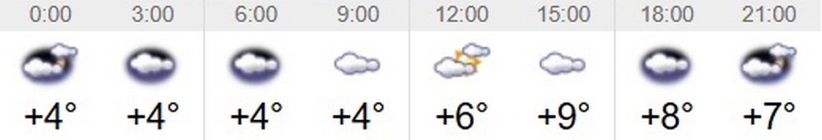 Швидкість вітру – 6-7 м/с. Вологість повітря коливатиметься між 41 та 84 відсотками протягом доби. Тривалість дня 5 березня – 11 годин 13 хвилин. Завтра день буде на 3 хвилини довшим, ніж сьогоднішній. Світанок настане о 6:29, а захід – о 17:42.