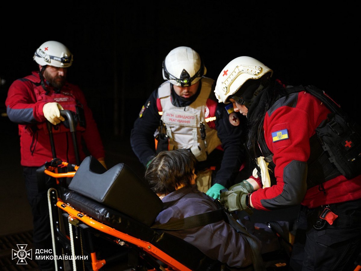 У Миколаєві у дворі п’ятиповерхівки через падіння уламків БпЛА зайнялася квартира, також пошкоджені інші помешкання. Рятувальники евакуювали маломобільну жінку. В інших локаціях ліквідували займання двох авто й гаража. В одному з приватних будинків вибуховою хвилею було заблоковано матір із трьома дітьми – усіх врятували. Загалом постраждали 10 людей, троє з них госпіталізовані з травмами.