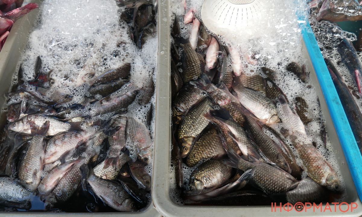 Чи не найбільшим попитом на базарі з самого ранку користується свіжа риба. Вибір якої доволі не поганий. Цього разу продавали багато мороженої. Камбалу можна було придбати по 230 гривень за кіло, мінтай по 150 гривень, а філе червоної риби по 700. Ціни порівняно з минулим тижнем майже не змінилися: