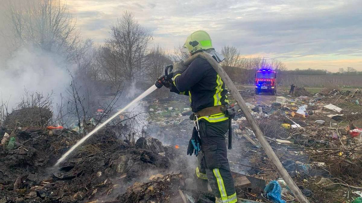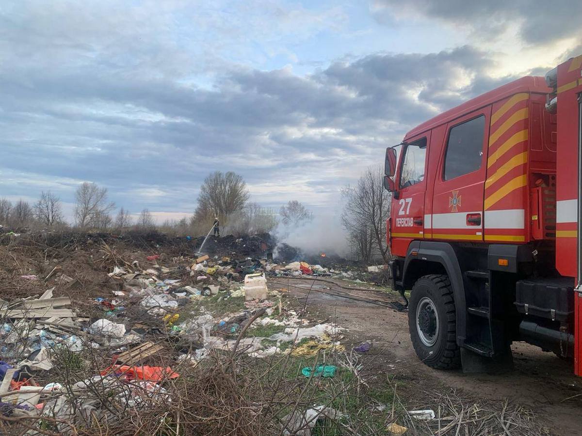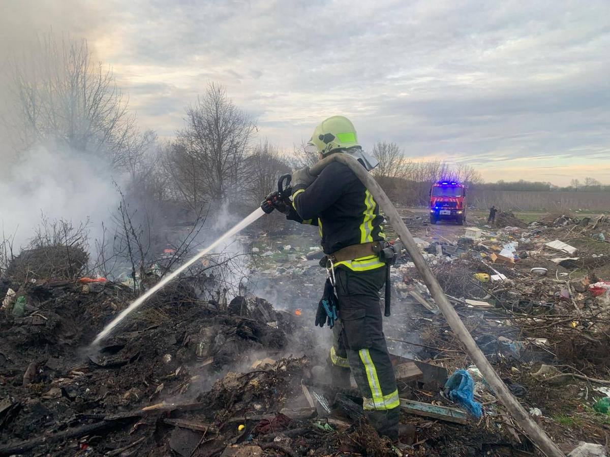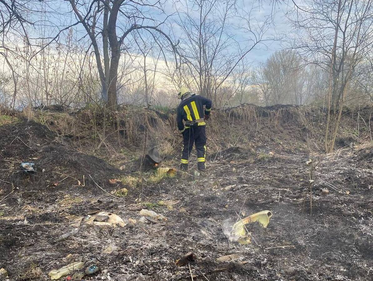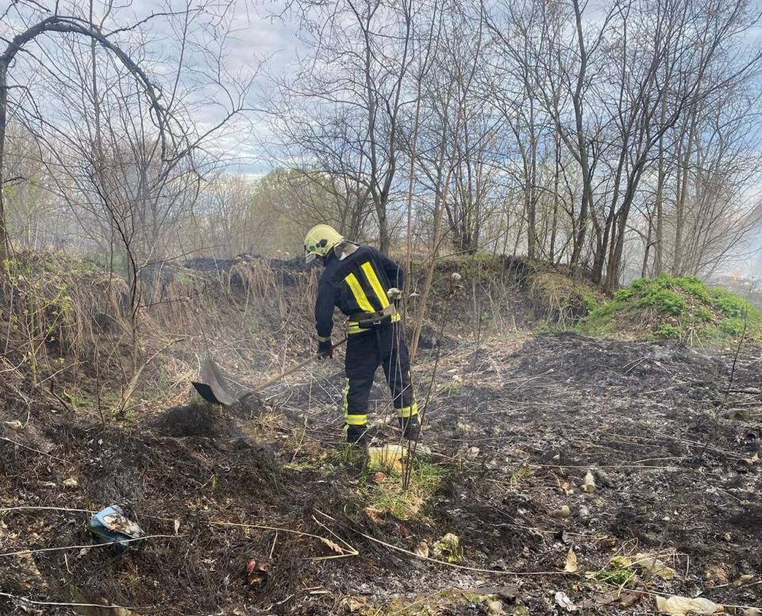 О 19:01 рятувальники прибули на місце події, встановили, що горить трав’яний настил на площі 0,5 га та несанкціоноване сміттєзвалище на площі 0,015 га. О 19:02 загальна площа пожежі збільшилася до 0,7 га, а глибина загоряння до 2 метрів. О 22:00 особовий склад та техніка повернулися у розташування. Протягом дня загоряння ліквідували на площі 0,05 га. 16 квітня рятувальники продовжили гасіння пожежі на площі 0,010 га. Ліквідували загорння о 8:45.