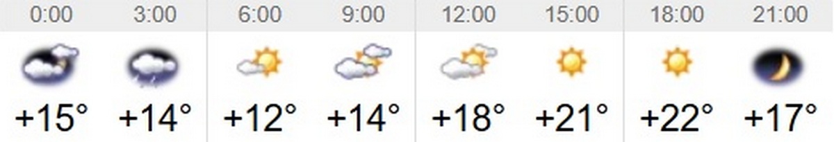 У четвер, 17 квітня, у Переяславі вночі можливий дощ, опади – 0,2 мм. Вранці та до опівдня буде хмарно з проясненнями, потім до кінця дня – сонячно. Мінімальна температура повітря буде вранці – 12 градусів тепла. Максимальна ввечері – 22 градуси вище нуля. Про це повідомляє Інформатор, посилаючись на sinoptik.