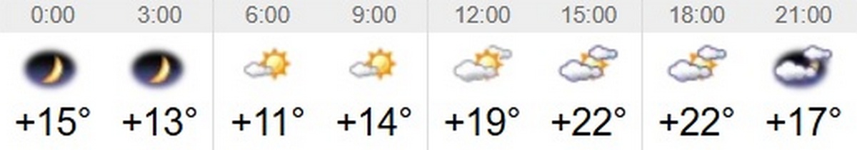 Швидкість вітру – 3-5 м/с. Вологість повітря коливатиметься між 42 та 81 відсотком протягом доби. Тривалість дня 18 квітня – 13 годин 57 хвилин. Завтра день буде на 3 хвилини довшим, ніж сьогоднішній. Світанок настане о 5:55, а захід – о 19:52.