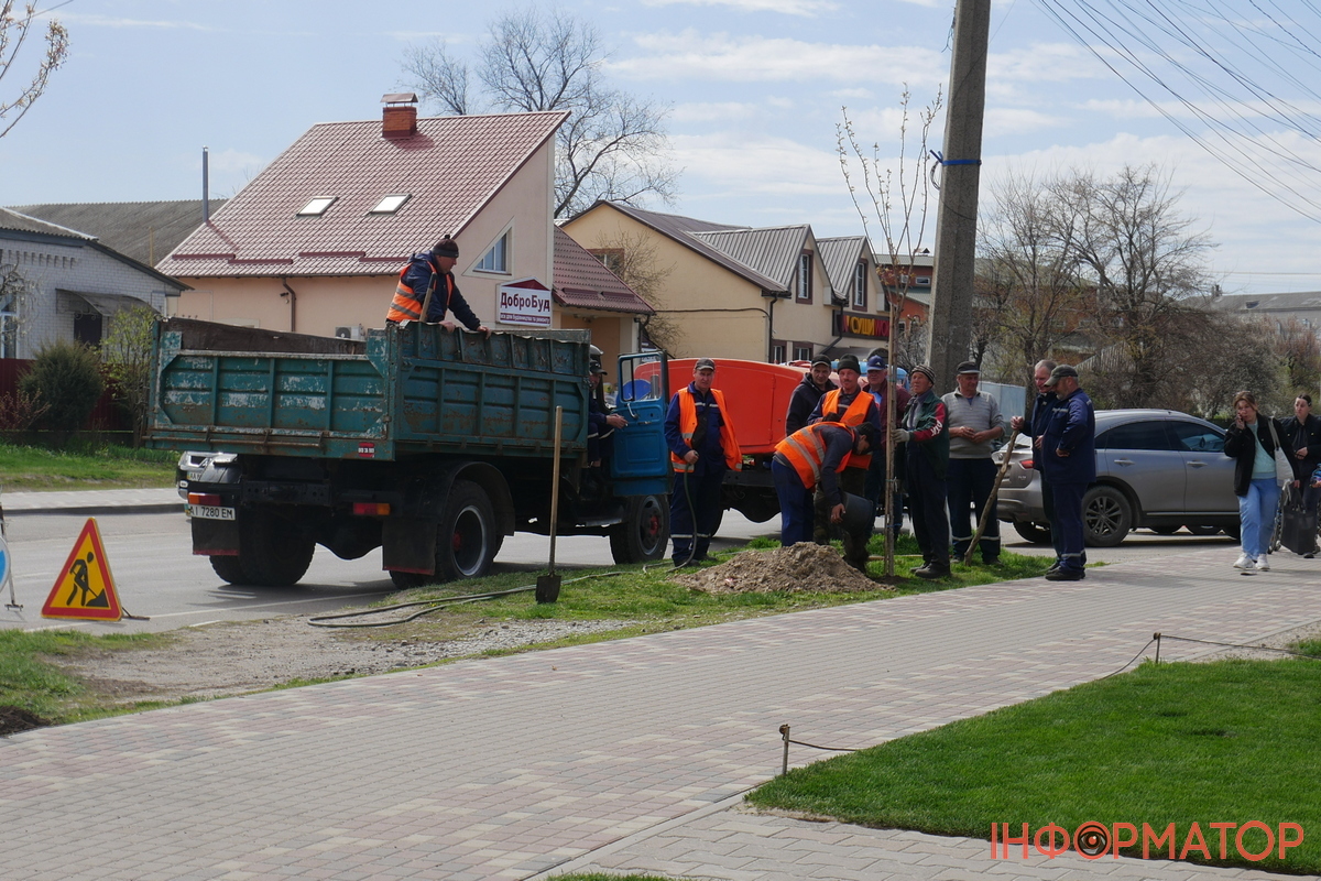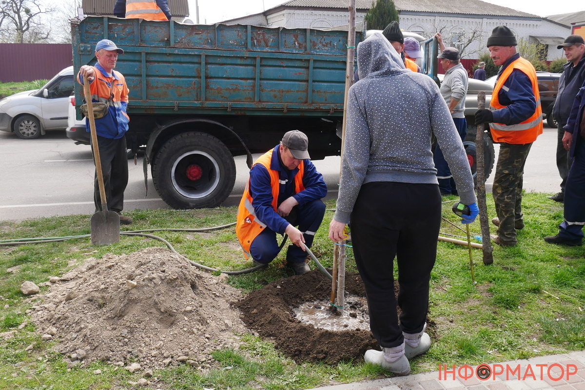 Висаджували дерева близько 10 працівників ВУКГ та цеху “Благоустрій”. Саджанці висотою сягають понад 2 метри, з розпущеними листочками і подекуди навіть цвітом. Досаджували їх від супермаркету “Фора” до автостанції та від магазину “Теремок” до Борисоглібської площі.
