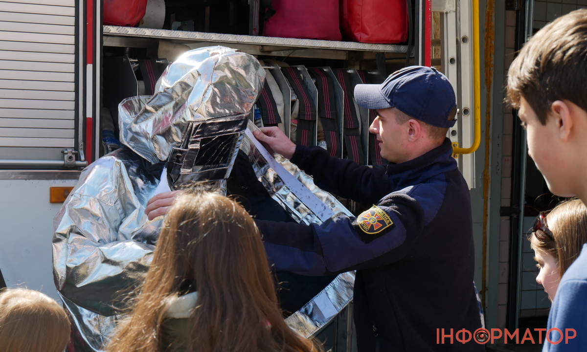 Також діти приміряли бойовий одяг пожежників