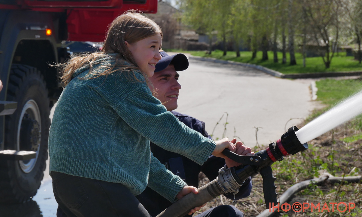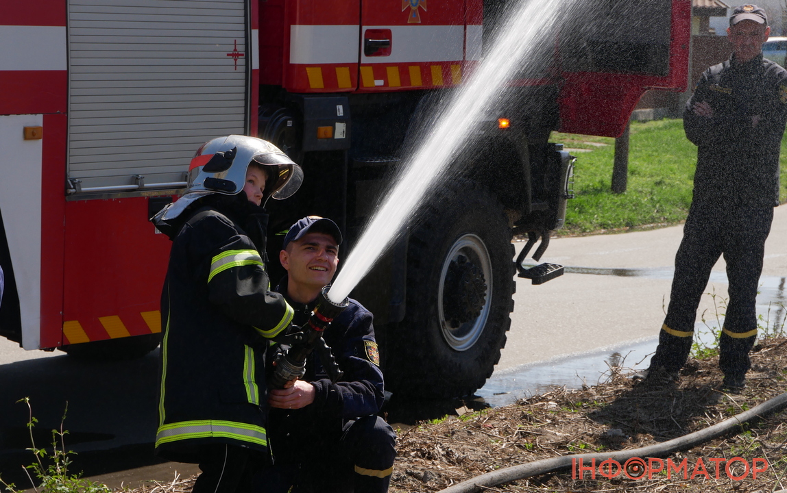 Найбільше емоцій дітям подарувало гасіння умовної пожежі, де кожен зміг відчути себе справжнім рятувальником, у рятівній формі та із пожежним шлангом у руках.