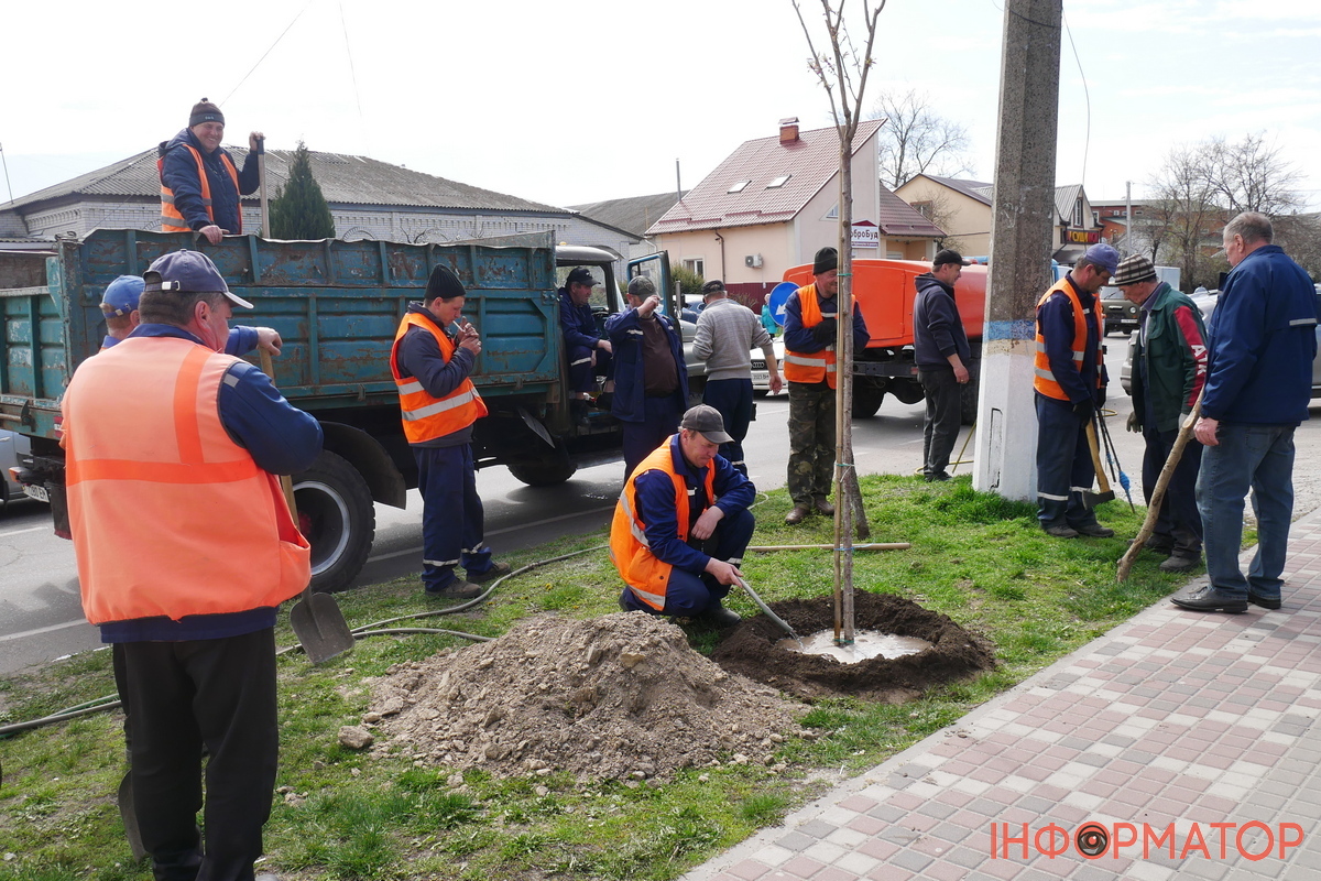 Висаджували дерева близько 10 працівників ВУКГ та цеху “Благоустрій”. Саджанці висотою сягають понад 2 метри, з розпущеними листочками і подекуди навіть цвітом. Досаджували їх від супермаркету “Фора” до автостанції та від магазину “Теремок” до Борисоглібської площі.