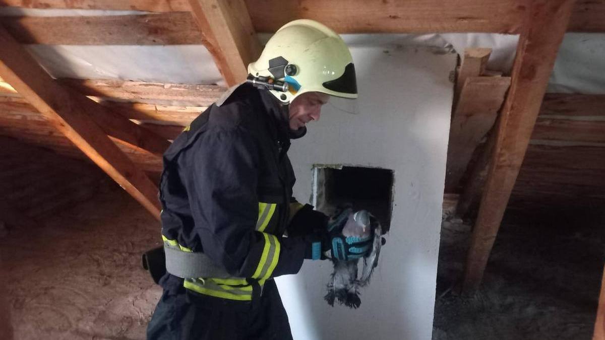 У Переяславі в димарі будинку застрягла пташка. Її врятували працівники ДСНС.