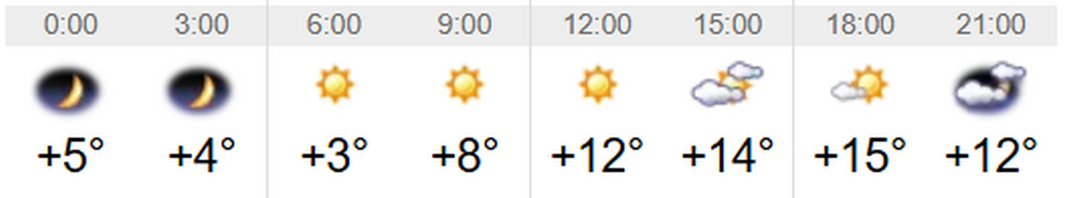 Швидкість вітру – 1-3 м/с. Вологість повітря коливатиметься між 30 та 69 відсотками протягом доби. Тривалість дня 28 квітня – 14 годин 33 хвилини. Завтра день буде на 4 хвилини довшим, ніж сьогоднішній. Світанок настане о 5:35, а захід – о 20:08.