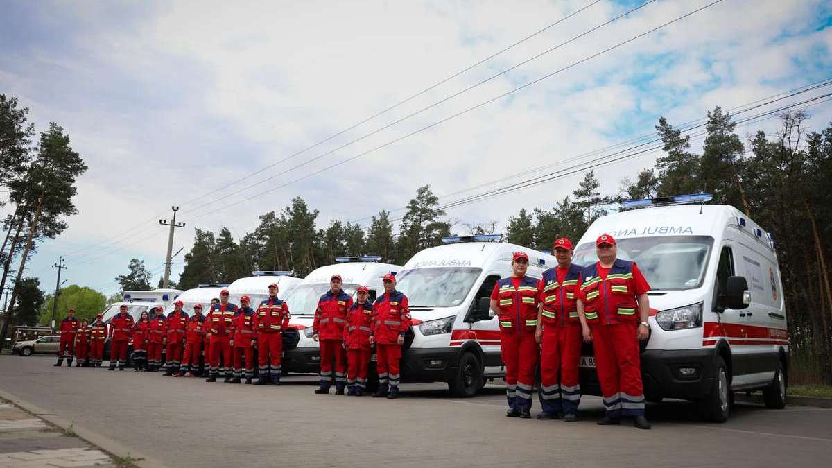 П’ять автомобілів марки Ford Transit надали завдяки підтримці Фундації першої леді Олени Зеленської. Ще один автомобіль Mercedes-Benz передала Всесвітня організація охорони здоров’я за сприяння USAID та уряду Німеччини. Отримали медичні автомобілі Вишгородська, Білоцерківська, Броварська, Обухівська, Переяславська та Фастівська станції.