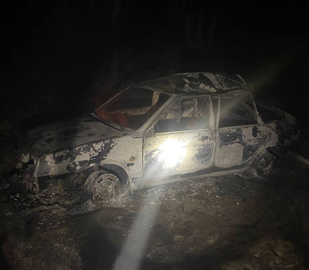 О 23:43 рятувальники прибули на місце події. Виявили згорівший автомобіль ВАЗ-2109 та загоряння лісової підстилки на площі 0,3 га. О 23:54 прибув 1-АЦ лісового господарства у складі 4 осіб. О 23:57 пожежу локалізували на тій же площі, ліквідували 4 травня о 00:13. На місці залишались чергувати працівники лісгоспу. Власників автомобіля встановили. Ніхто не постраждав.