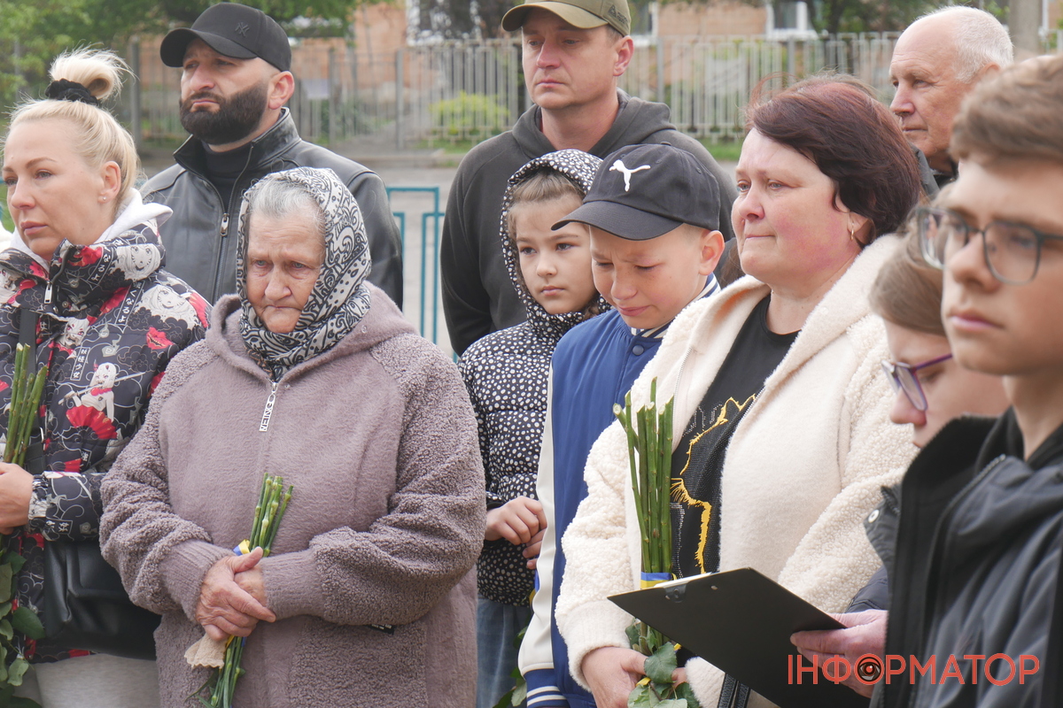 Відкрили меморіальну дошку Сергію Тарасюку його мама Тетяна Іванівна та син Максим. Хлопчик не стримував сліз, а його бабуся всіляко його підтримувала. Вони втратили найріднішого – сина та батька.