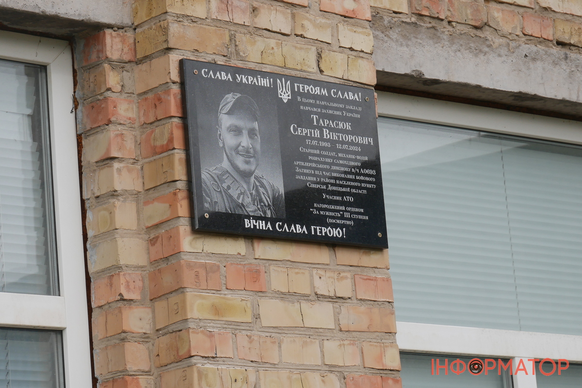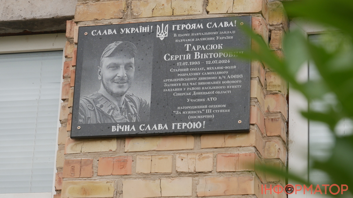 У Переяславі на фасаді гімназії №4 відкрили меморіальну дошку Сергію Тарасюку. Він загинув на війні у липні 2024-го.