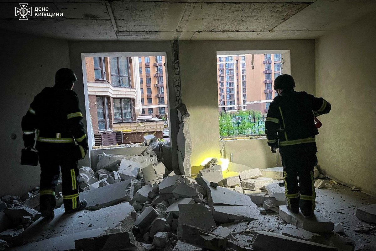 У Солом’янському районі уламки БпЛА впали на відкриту територію. У Дніпровському районі безпілотник впав на багатоповерховий житловий будинок, сталося часткове руйнування перекриття на 29-му та 30-му поверхах – загоряння та потерпілих немає.