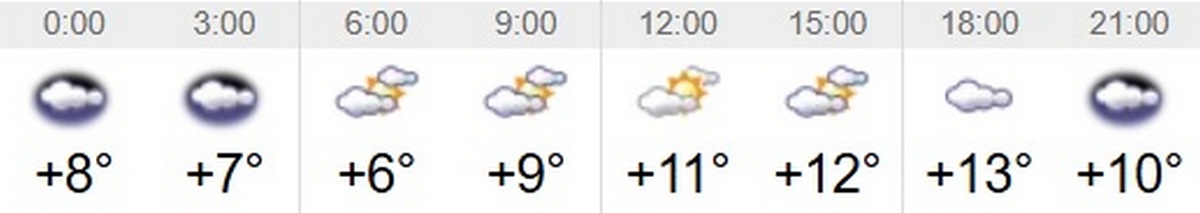 Швидкість вітру – 4 м/с. Вологість повітря коливатиметься між 35 та 67 відсотками протягом доби. Тривалість дня 10 травня – 15 годин 11 хвилин. Завтра день буде на 3 хвилини довшим, ніж сьогоднішній. Світанок настане о 5:15, а захід – о 20:26.