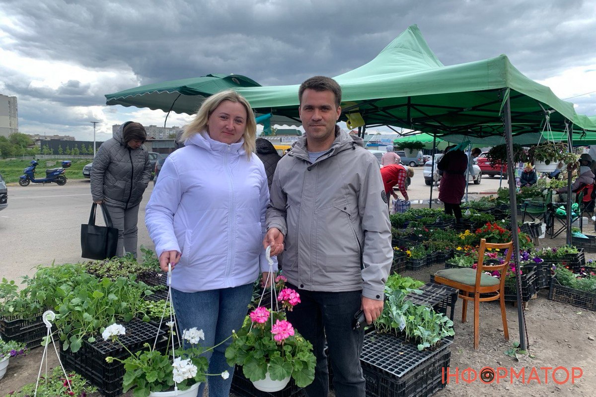 Подружжя Малишків із Переяслава приїхало, щоб обрати підвісні вазони для своїх матусь до Дня матері. Зупинили свій вибір на пеларгоніях. Запитали й за розсаду городини, але з цікавості, бо вирощують вдома власну.