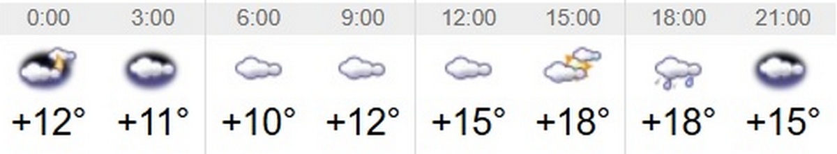 Швидкість вітру – 3-8 м/с. Вологість повітря коливатиметься між 49 та 77 відсотками протягом доби. Тривалість дня 15 травня – 15 годин 25 хвилин. Завтра день буде на 2 хвилини довшим, ніж сьогоднішній. Світанок настане о 5:08, а захід – о 20:33.