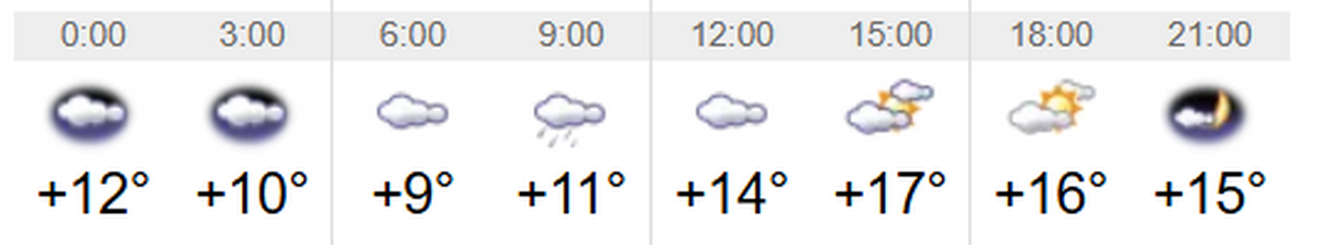 Швидкість вітру – 2-5 м/с. Вологість повітря коливатиметься між 53 та 97 відсотками протягом доби. Тривалість дня 18 травня – 15 годин 33 хвилини. Завтра день буде на 2 хвилини довшим, ніж сьогоднішній. Світанок настане о 5:04, а захід – о 20:37.