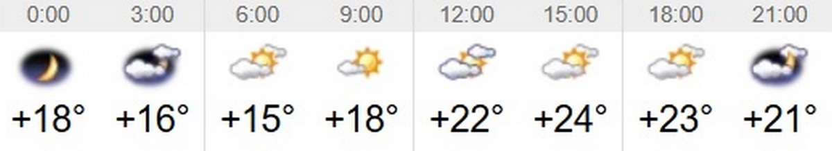 Швидкість вітру – 4-6 м/с. Вологість повітря коливатиметься між 44 та 71 відсотком протягом доби. Тривалість дня 23 травня – 15 годин 46 хвилин. Завтра день буде на 2 хвилини довшим, ніж сьогоднішній. Світанок настане о 4:58, а захід – о 20:44.