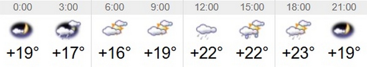 Швидкість вітру – 3-6 м/с. Вологість повітря коливатиметься між 58 та 85 відсотками протягом доби. Тривалість дня 24 травня – 15 годин 48 хвилин. Завтра день буде на 2 хвилини довшим, ніж сьогоднішній. Світанок настане о 4:57, а захід – о 20:45.