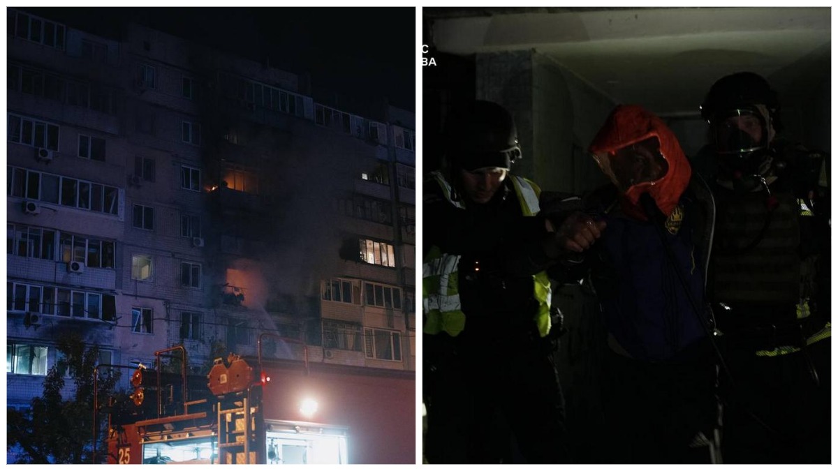 - Оболонський район – постраждала звичайна житлова багатоповерхівка. Дрон пошкодив низку квартир на 3-6 поверхах. Тут відомо про пʼятьох постраждалих. На свіже повітря вивели двох людей. Пожежу ліквідовано. Тут одна з головних точок оперативної ліквідації наслідків. Багато вибитих вікон. Розгорнуто оперативний штаб за координації керівництва РДА. Всім постраждалим надається допомога і харчування.