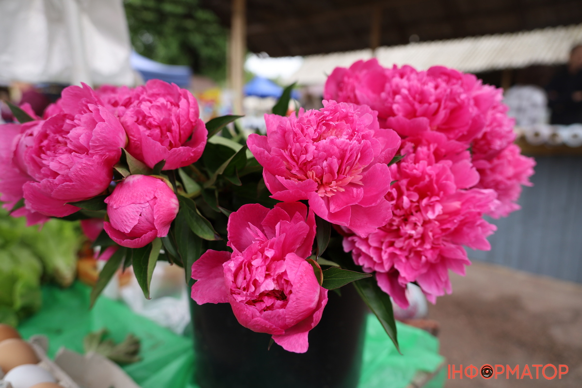 25 травня у Переяславі зранку трималася хмарна погода, проте досить тепла аби сходити за покупками на недільний базар. Тільки ступивши на Шкільну – головну вулицю торгів, відразу можна було вловити п’янкий аромат різних квітів. Цього разу продавали багато півоній, адже настав сезон їх цвітіння. Тож їх можна було придабати по 20 гривень за одну розпущену квітку або ж по 25 гривень за бутончик. Так само на кожному кроці пропонували іриси, ціна на які варіювалася від 30 до 70 гривень. Інформатор традиційно розповідає про ціни на продукти та інше.