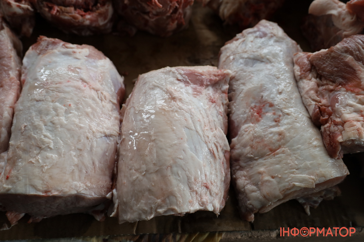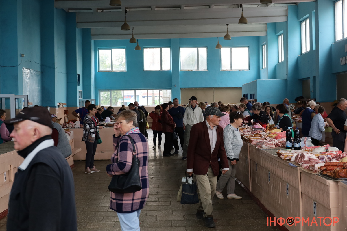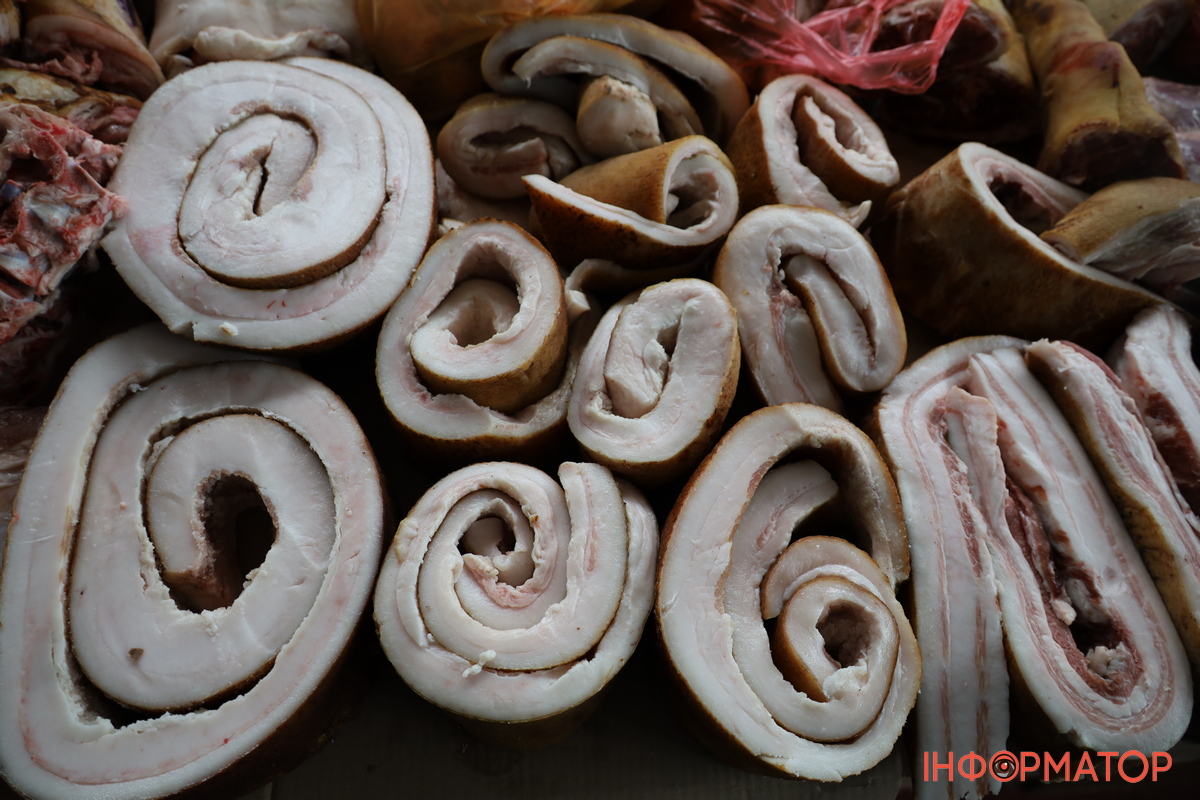 У м’ясний павільйон приходило багато охочих за свіжиною. На прилавках продавці, як і завше, пропонували майже все можливе із свинини, трохи телятини та курятини. Задивлялися люди й на домашню ковбасу, 1 кілогам зі свинини можна було купити за 270, з телятини за 300. Ціни на інше залишаються незмінними: