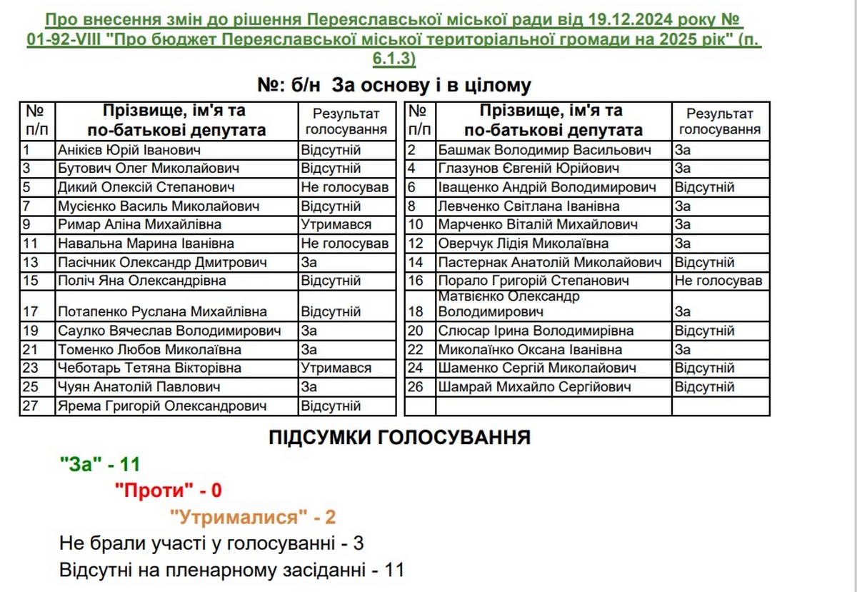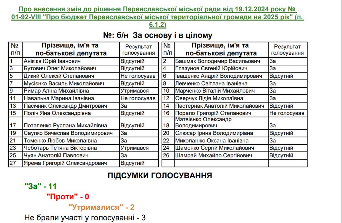 А ось по 100 тисяч гривень на виготовлення проєктно-кошторисної документації на капітальний ремонт покриття подвір’я Переяславської музичної школи імені Павла Сениці та реконструкцію перехрестя вулиць Хмельницького, Грушевського та Покровської у Переяславі депутати не виділили. Депутатка Аліна Римар під час розгляду змін до бюджету попросила виставити ці два пункти на голосування окремо. Пояснила це тим, що вважає, що міська рада розпочала й без того багато проєктів, які варто було би спершу завершити, а потім займатися новими. Зрештою голосів на ці пункти забракло.