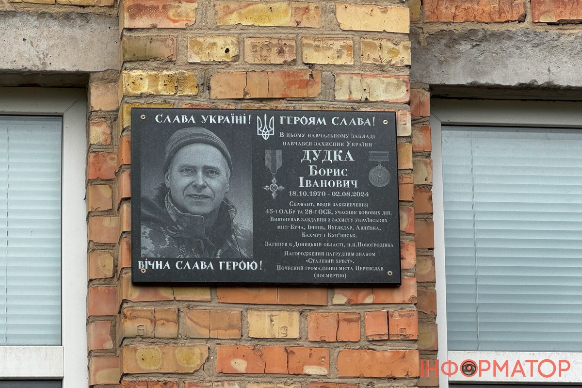 У Переяславі на фасаді гімназії №4 відкрили меморіальну дошку Борису Дудці. Він загинув на війні у 2024 році.