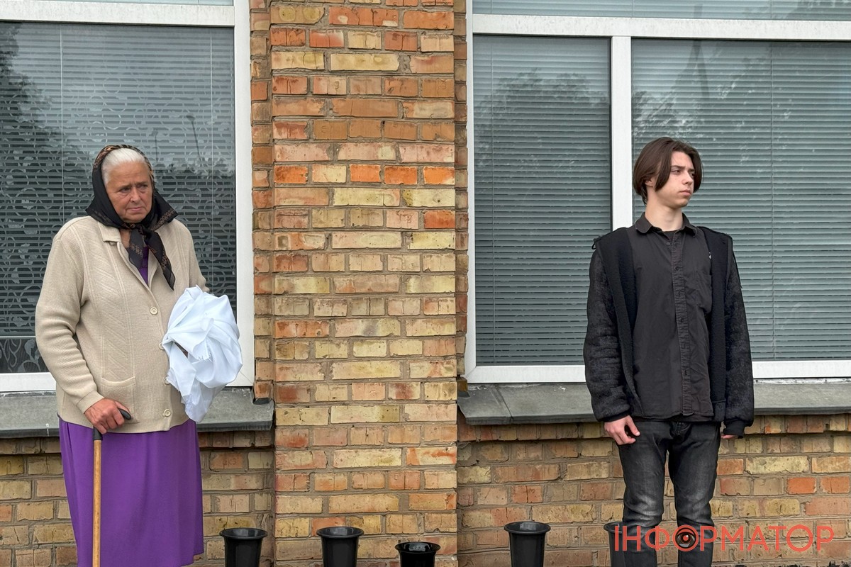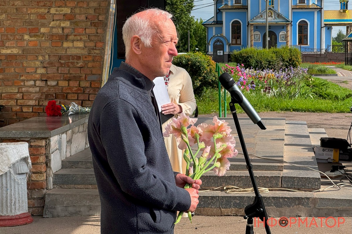Після цього присутні піднесли квіти до меморіальної дошки. Зі сльозами на очах люди низько вклонялися та ставали на коліна.