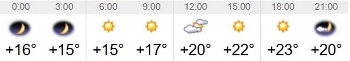 Швидкість вітру – 3-6 м/с. Вологість повітря коливатиметься між 43 та 90 відсотками протягом доби. Тривалість дня 31 травня – 16 годин 3 хвилини. Завтра день буде на 2 хвилини довшим, ніж сьогоднішній. Світанок настане о 4:50, а захід – о 20:53.