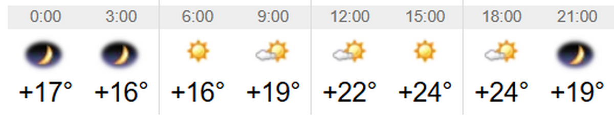 Швидкість вітру – 2-4 м/с. Вологість повітря коливатиметься між 48 та 91 відсотком протягом доби. Тривалість дня 1 червня – 16 годин 4 хвилини. Завтра день буде на 1 хвилину довшим, ніж сьогоднішній. Світанок настане о 4:50, а захід – о 20:54.