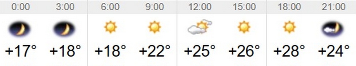 Швидкість вітру – 1-4 м/с. Вологість повітря коливатиметься між 38 та 82 відсотками протягом доби. Тривалість дня 5 червня – 16 годин 11 хвилин. Завтра день буде на 2 хвилини довшим, ніж сьогоднішній. Світанок настане о 4:47, а захід – о 20:58.