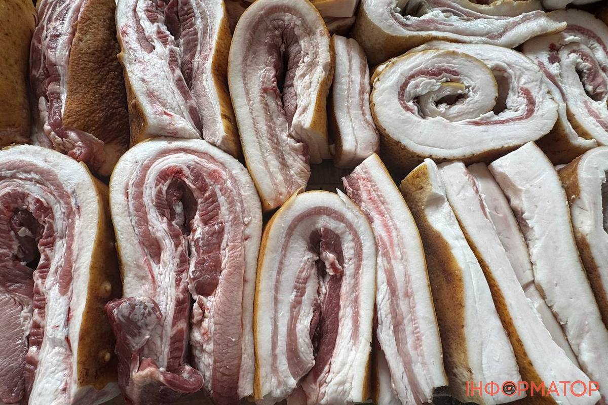 У м’ясному павільйоні панувала звична торгова атмосфера: постійні покупці впізнавали своїх продавців та обирали свіжину. Попри загальне зростання цін на інші продукти, тутешні ціни на сало та м’ясо залишаються стабільними – подорожчання немає. Але знайшлися продавці у яких сало коштувало по 220 гривень за кіло. Загалом ціни такі: