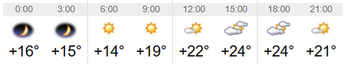 Швидкість вітру – 2-6 м/с. Вологість повітря коливатиметься між 47 та 84 відсотками протягом доби. Тривалість дня 16 червня – 16 годин 21 хвилина. Завтра день буде такий самий, як і сьогоднішній. Світанок настане о 4:44, а захід – о 21:05.