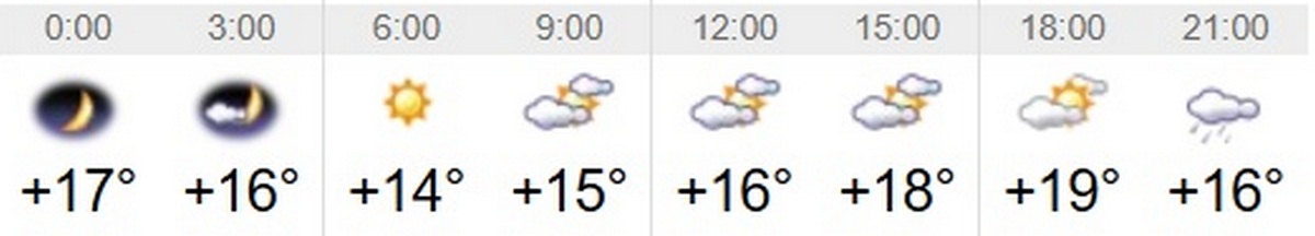 Швидкість вітру – 4-9 м/с. Вологість повітря коливатиметься між 41 та 69 відсотками протягом доби. Тривалість дня 20 червня – 16 годин 23 хвилини. Завтра день буде на одну хвилину довшим, ніж сьогоднішній. Світанок настане о 4:44, а захід – о 21:07.