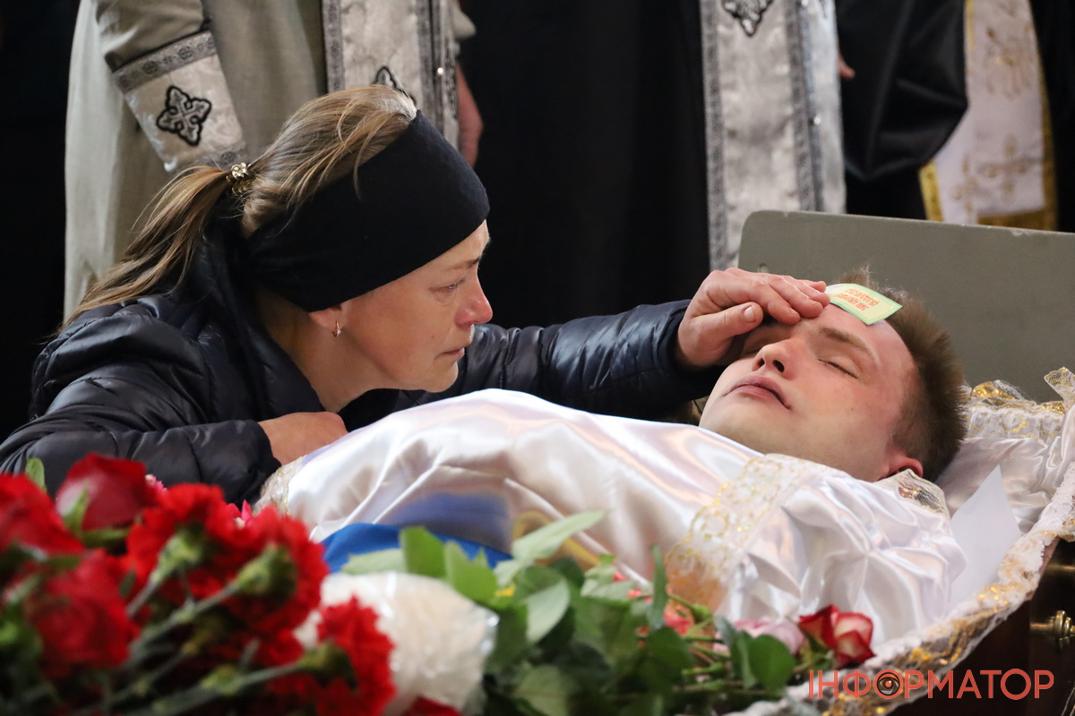 Цього дня до Храму Святого Рівноапостольного князя Володимира Великого попрощатися з молодим воїном прийшло близько двохсот людей: друзі, односельці, рідні, знайомі, військові. Його домовину вкривали квіти, які постійно несли люди та низько вклонялися перед захисником. Мати протягом всієї літургії стояла навколішки біля сина, ніжно торкалася його обличчя та поправляла волосся, шепотіла йому: “Синку, відкрий оченята, відкрий”… У хлопця також залишилася два менші брати Тимофій та Макар.