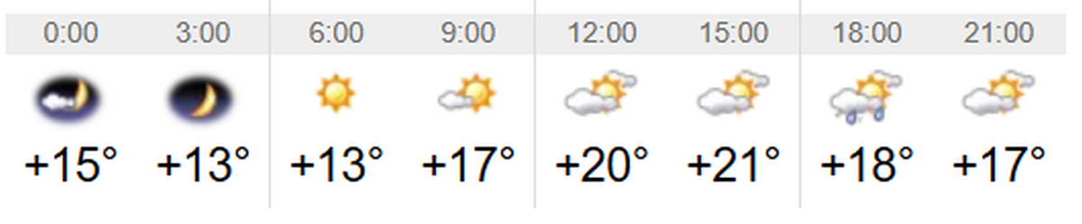 Швидкість вітру – 3-8 м/с. Вологість повітря коливатиметься між 47 та 84 відсотками протягом доби. Тривалість дня 22 червня – 16 годин 24 хвилини. Завтра день буде на одну хвилину довший, ніж сьогоднішній. Світанок настане о 4:45, а захід – о 21:07.