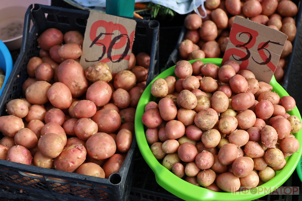 Найбільші черги були до яскравих прилавків із овочами. Покупців цікавили помідори, які зросли в ціні, і тепер коштують від 110 до 170 гривень за кілограм (тиждень тому були по 90-120). На прилавках досі багато молодих кабачків. Цього тижня вони подешевшали – їх продавали по 40-55 гривень за кілограм (були по 70-80). Домашня молода картопля теж трішки знизилась у вартості, її можна було придбати по 45-80 гривень за кілограм у залежності від сорту (була по 65-90). Ціни на інші овочі такі:
