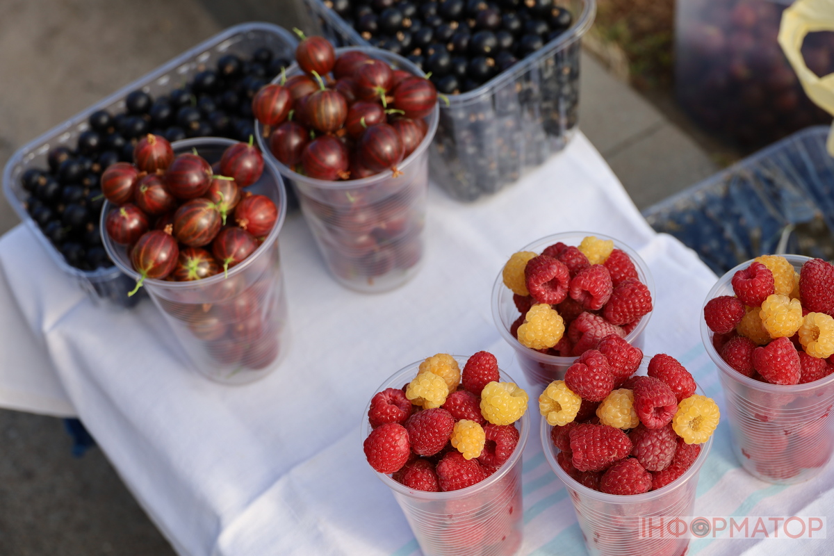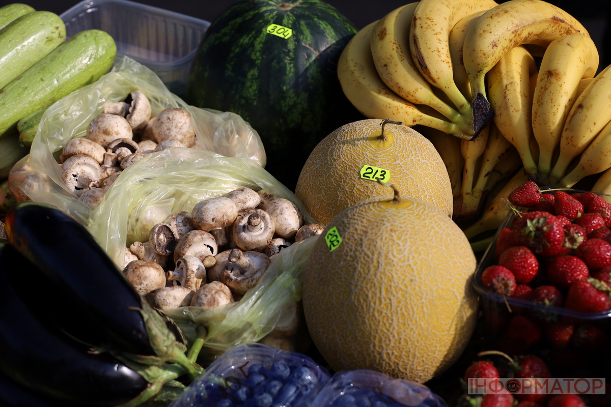 У фруктових відділах значно зріс асортимент. Зокрема, з’явилася малина різних сортів – біла, класична рожева, жовта, червона та навіть чорна. Продавали її і в стаканчиках по 30-50 гривень, і на вагу. За кілограм домашньої малини потрібно було віддати 100-150 гривень. На прилавках поряд із малиною також продавали смородину, порічки та аґрус. У середньому ці ягоди коштували 130-150 гривень за кілограм. Почали з’являтися у продажі кавуни та дині, за один кавун просили близько 300 гривень, за дині – 200. На деякі інші фрукти та ягоди ціни такі:
