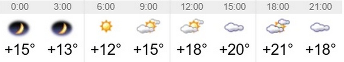 Швидкість вітру – 1-7 м/с. Вологість повітря коливатиметься між 44 та 88 відсотками протягом доби. Тривалість дня 23 червня – 16 годин 22 хвилини. Завтра за тривалістю день буде таким як і сьогоднішній. Світанок настане о 4:45, а захід – о 21:07.