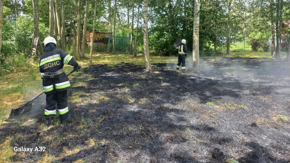 О 12:24 рятувальники прибули на місце події. Виявили, що горить трав’яний настил на площі 0,2 га на приватній території.